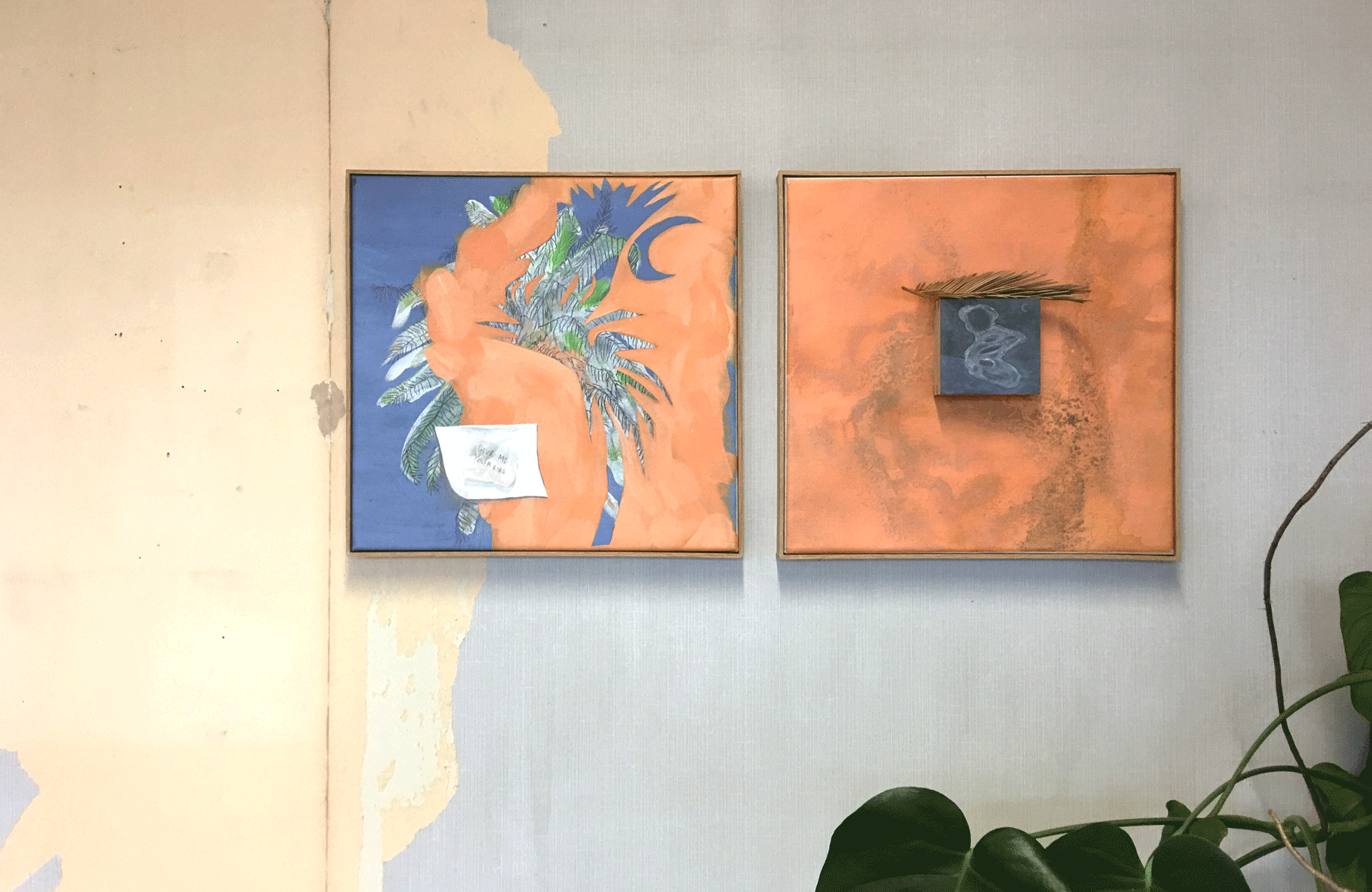 Diptych, mixed media on canvas and wood, 41x41x4cm x2, 2017