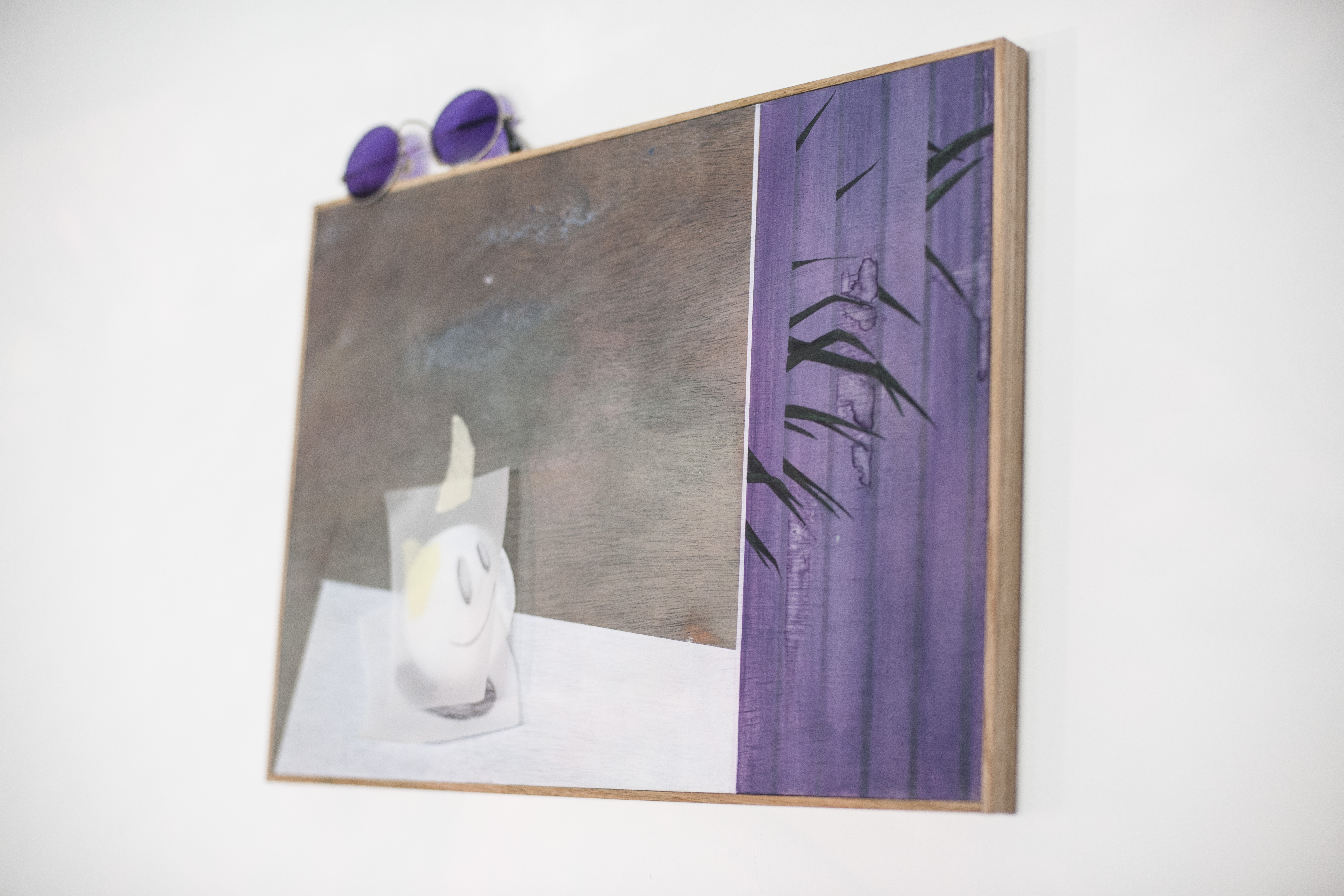 Peinture sur bois, graphite sur calque et objet, 43x41cm, 2018