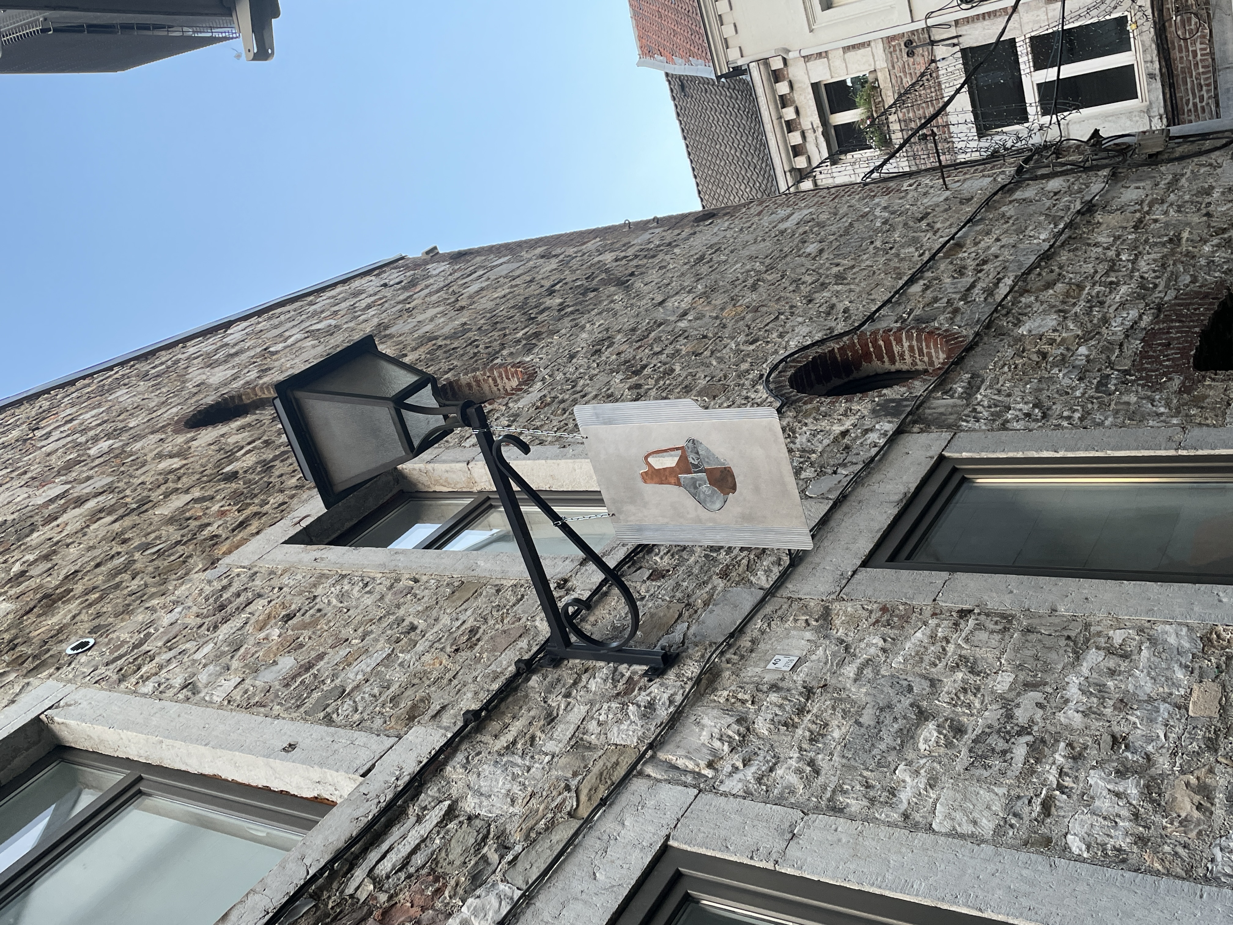 Tout commence dans un livre, et plus particulièrement pour l’admiration d’une peinture aux mille détails de Pieter Brueghel l'Ancien. Dans cette peinture une ville médiévale en effervescence. Plusieurs histoires dans la même image. Un détail me saute aux yeux, une lune qui trône sur l’enseigne d’une maison accrochée à son toit. Le caractère magique de l’image au centre du tableau absorbe mon regard et me lance dans une recherche sémantique, l’image comme point de repère. Au Moyen-Âge l’enseigne avait un rôle majeur dans le repérage urbain et permettait une navigation visuelle. La naissance d’une constellation. Il arrive que notre capacité à comprendre le monde dépasse la réalité et que nous donnions du sens au hasard. Nous relions des lignes imaginaires pour créer délibérément du sens à l'apparent chaos qui nous entoure. Ce phénomène cognitif nous délivre des images, et nous permet de déambuler avec poésie dans le labyrinthe que nous impose la ville.